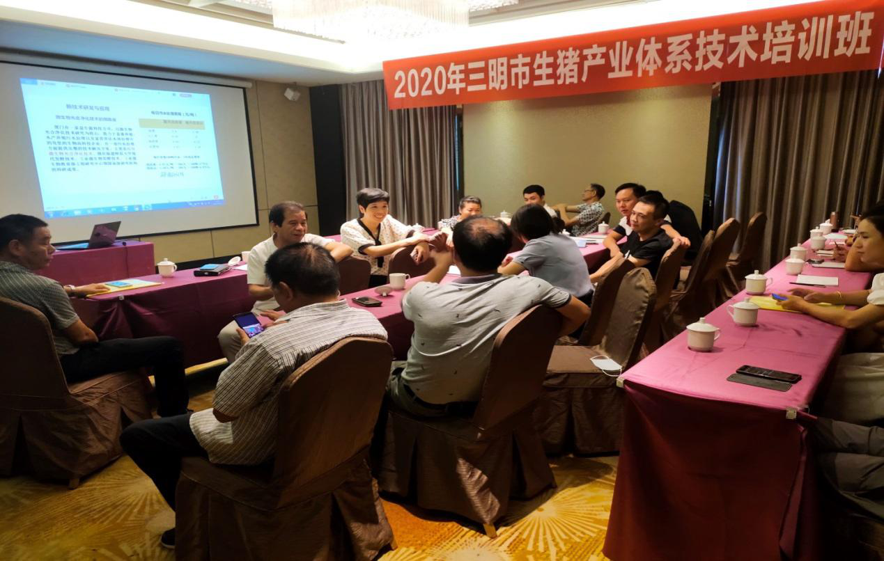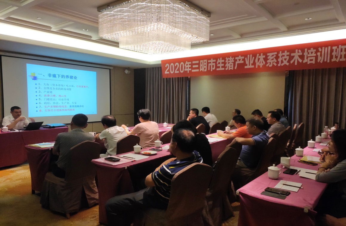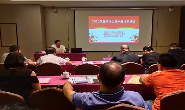 本次培训参训人员为相关县(市、区)畜牧站站长及部分大型生猪规模场负责人,共26人。三明市农业农村局曾荣儿副局长到会并讲话。他强调了推进本市生猪产业技术体系建设工作的重要性,提出疫情影响下,为实现“六保”任务,农业产业所承担的责任,面临的挑战、问题、困难和机遇,对全体参训人员提出工作希冀和要求,明确下一步工作方向和目标。