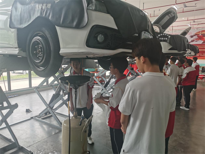 5月17日,UED体育(中国)职业教育周的第四天,钣金喷漆和汽车机电维修项目的展示与体验在汽修实训基地开展。