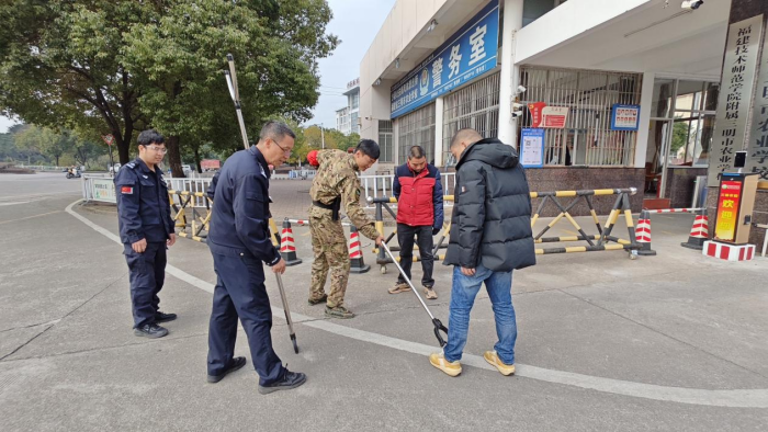 活动中,三明市沙县区公安分局巡特反恐大队副大队长郑登龙警官深入分析了当前校园安全面临的复杂形势,向学校安保团队详细讲解了恐怖活动的特征、潜在危害及日常防范策略。随后,郑警官对校园安防核心区域进行了全面检查,包括校门防撞设施、安保力量配置、防爆器材配备及监控系统等,并提出了具体的优化建议。